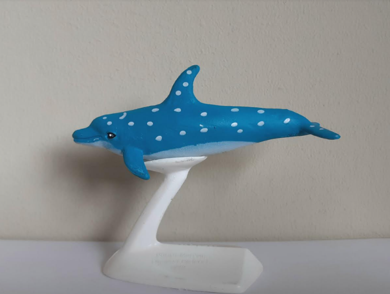 Nayab/Happy Kin ----- An interesting figure for an interesting species, this dolphin sits on some waves and has a fish in its mouth! The figure itself is pretty good, aside from the dorsal fin that is too straight and the strange wrinkly texture on its skin that a lot of Nayab cetaceans have. Length 12 cm
