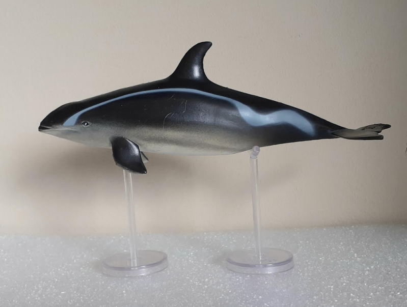 Play Visions small ----- A nice model which represents the species much better than the larger version (which is a re-coloured hourglass dolphin). The head is a bit too round but the dorsal fin is in the correct shape and placement and the overall body shape is accurate. Length 7,2 cm
